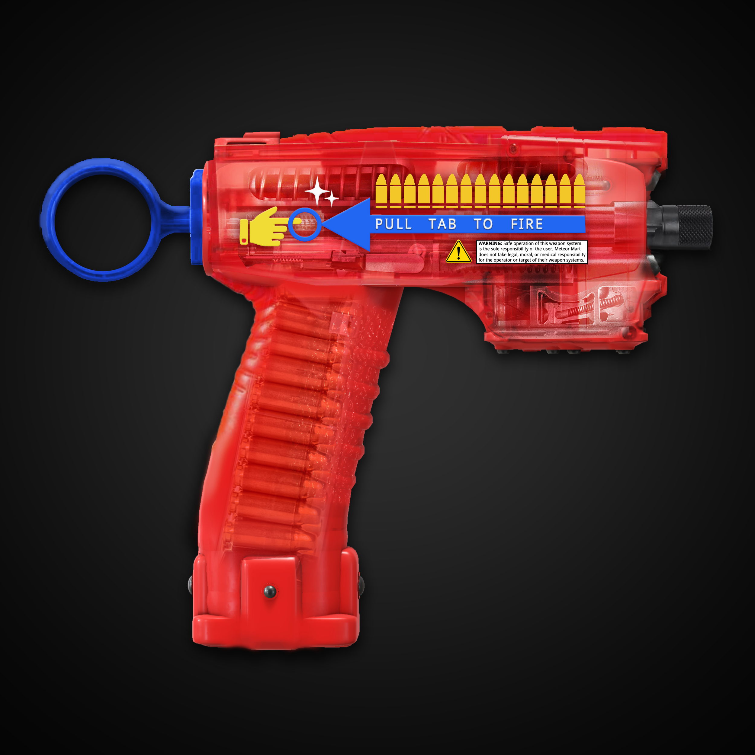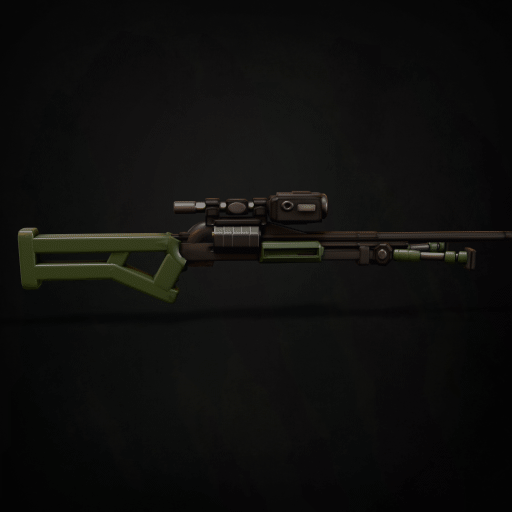 Found at an affordable price in most Meteor Mart vending kiosks. Pull tab to fire. Once activated, the firearm will discharge its capacity until empty. [This gun cannot be modified and its Capacity (CAP) comes preinstalled with ammo. Once fired, this gun makes an attack each round and cannot be reloaded.]