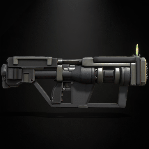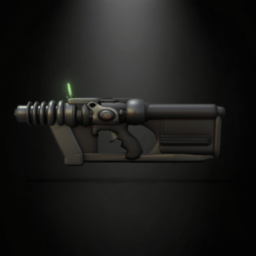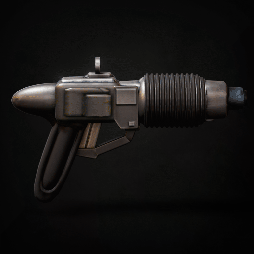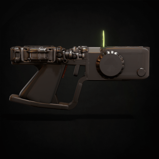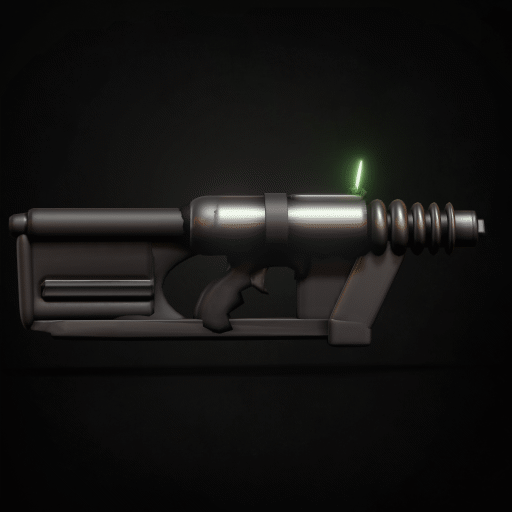 Industrial Thinking Machines’ Pulse-Discharge Energy Beam gun was humanity’s first handheld energy blaster. This weapon has fallen out of favor over the years, due in large part to its exposed form factor and propensity for needing repairs. Its lack of elegance is evidence of its early design.
