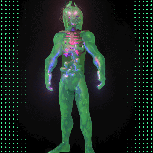 The exterior layer of a Gup’s epidermis is a thick viscous non-conductive mucus-like gel which contains pockets of plasma-based electromagnetic organelle which carry out the bodily functions of the lifeform. Gup can vary widely in color variation, silhouette, and size, typically dependent on the host lifeform which underwent metamorphosis.
