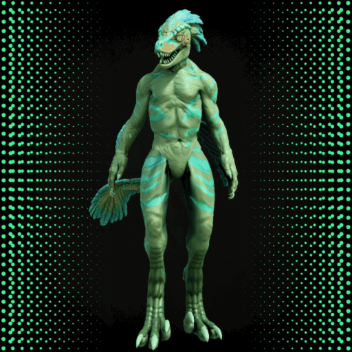 Distant relatives to their terasaur cousins, Kynos exhibit a wide variety of reptilian physical traits including: feathers, large serrated teeth, thick scaly skin, bright coloration, horns, tails, etc.