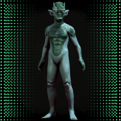 The Tebloni are a descendant of the Neam-ní, an extinct ancient genus native to Nymisto. Neam-ní are defined by their ability to survive in vacuums, odd physiology, and colorful epidermis. The Tebloni are notable for the large calcific growths on their heads and chests, long ears, and wide eyes.