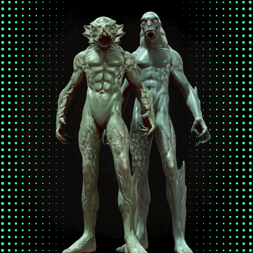 Evolved to swim in Kørt’s dangerous waterways, the Vit-Kada have long, slender muscular physiques, retractable fins protrude from their forearms and calves, large gills run the length of their throat, and they have a circular toothy mouth which can violently engulf their aquatic prey.