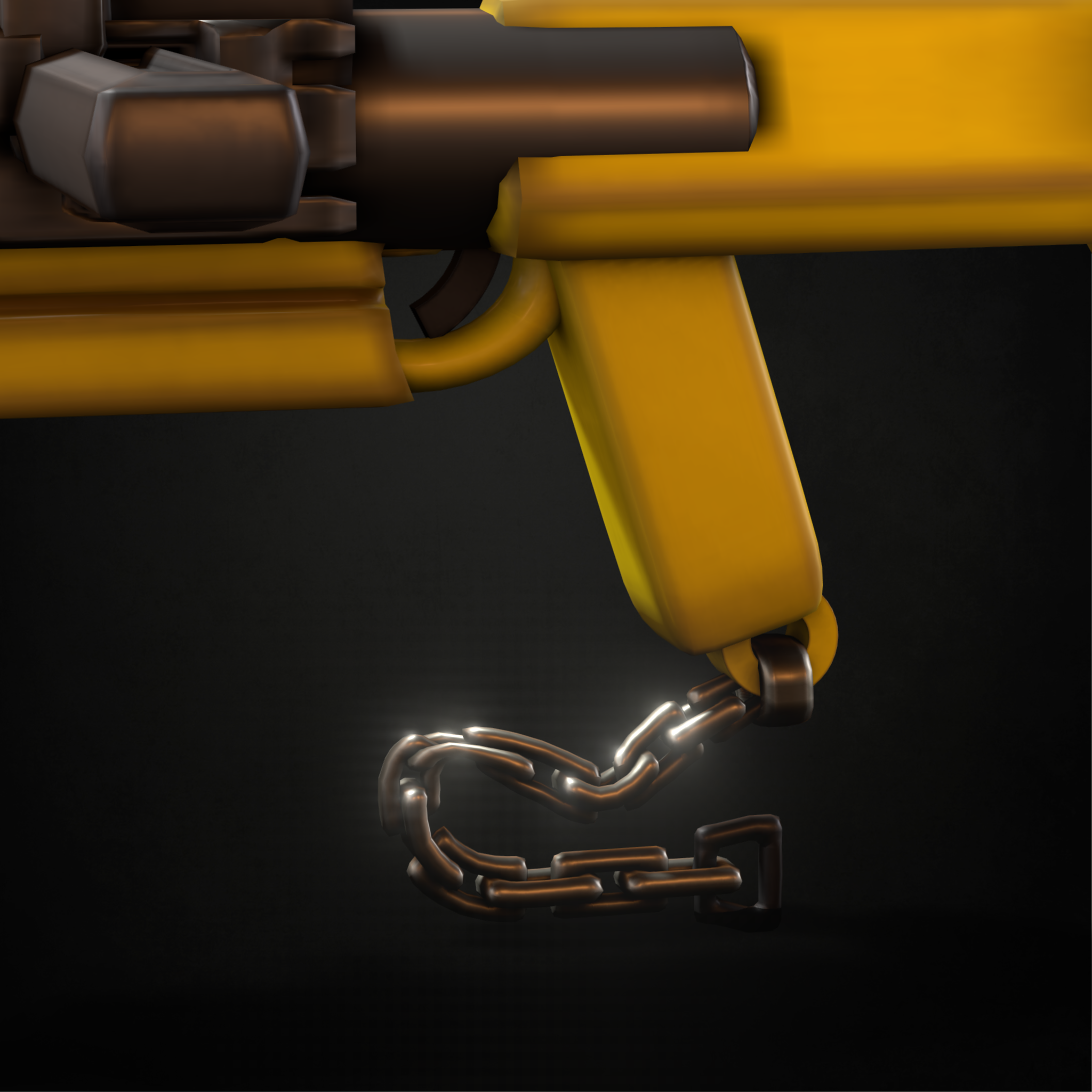A chain or other tether is attached to a weapon, granting it the CUMBERSOME FX but preventing it from being GRABBED by enemies.