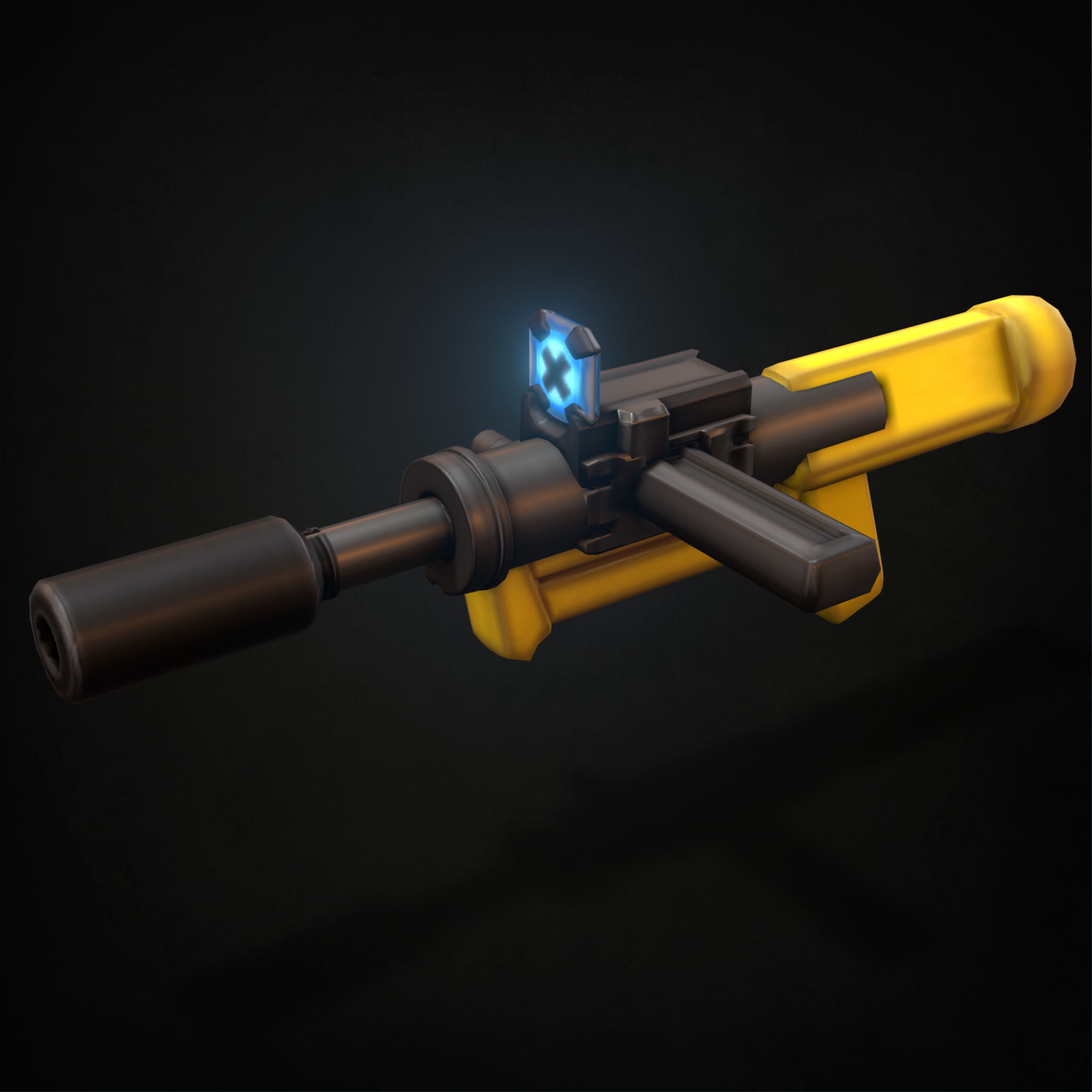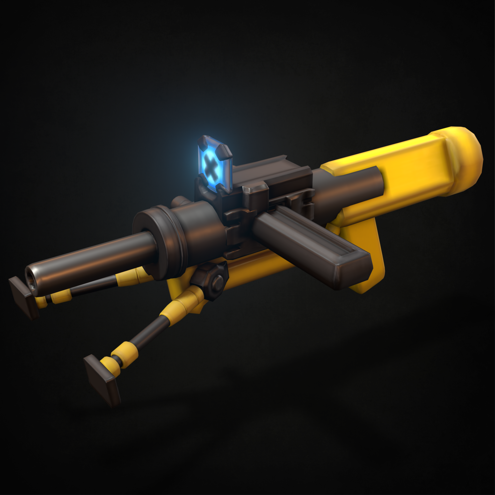 A target-acquisitioning device which may be affixed to the body of a gun. This attachment grants the weapon an additional 5 units of range.